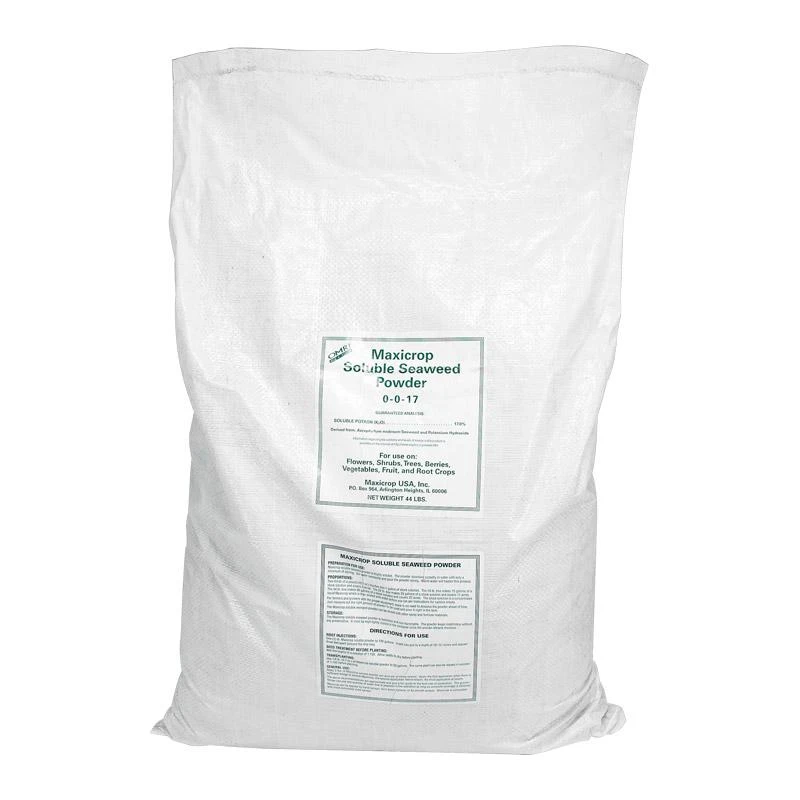 1 lb of Maxicrop is created from over 200 lb of seaweed. Maxicrop is sought after primarily for its trace elements but also has an analysis of 0% N, 0% P, 17% K.